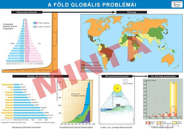 Bemutatás: Az oktató tabló részletesen bemutatja a Föld globális problémáit.
