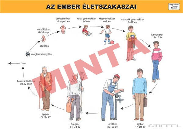 Bemutatás: Az oktató tabló részletesen bemutatja az ember életszakaszait a születéstől a halálig. Az oktató tabló, lemosható-műbőrre nyomtatott kivitelben kerül értékesítésre.