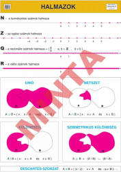 Bemutatás: Az oktató tabló részletesen szemlélteti a matematikai halmazokat. Az oktató tabló, lemosható-műbőrre nyomtatott kivitelben kerül értékesítésre.