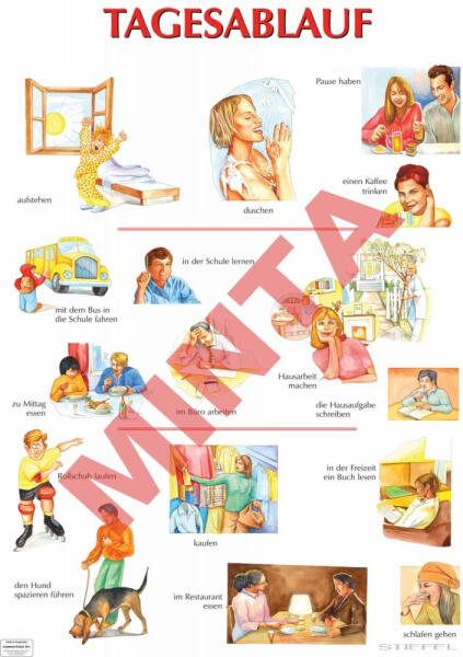 Bemutatás: Az oktató tabló kivállóan alkalmas arra, hogy a diákok a nyelv órán megismerkedhetnek a napirend témával és a képek segítségével könnyedén elsajátíthatják a szavakat.