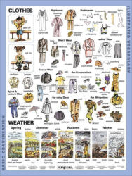 Az öltözködéssel és az időjárással kapcsolatos angol kifejezések összefoglalása, a nyelvtanulás megkönnyítésére. A fehérneműktől az esőkabátig, a hálóruháktól sportruházatig a legkülönfélébb ruhadarabok nevei megtalálhatóak tablónkon. Ugyanígy az évszakok nevei is és az időjárás jellemzésére szolgáló kifejezések is elsajátíthatóak segítségével. Írható-letörölhető fóliával bevont felülete és a hátoldalán található munkaoldal lehetővé teszi a tudás ellenőrzését is. Tekintse meg többi angol nyelvi tablónkat is!
